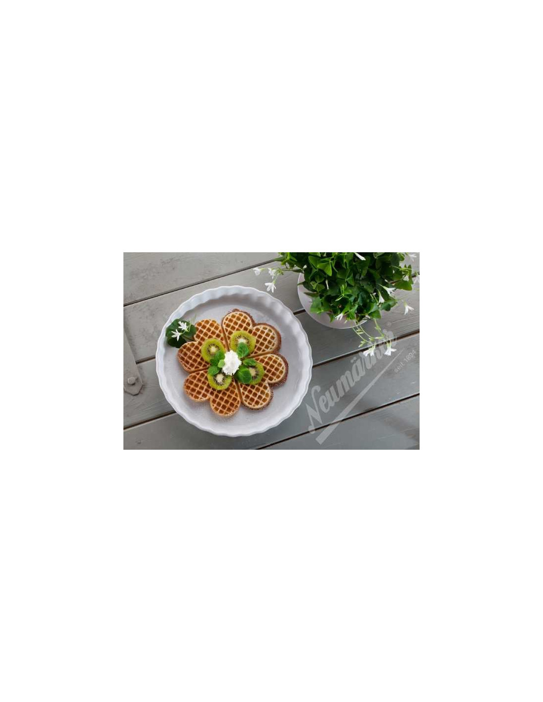 Con este juego de placas podrás hacer de manera artesanal el gofre "Sunny" con un diseño moderno de 4 corazones en lugar de 5 corazones.