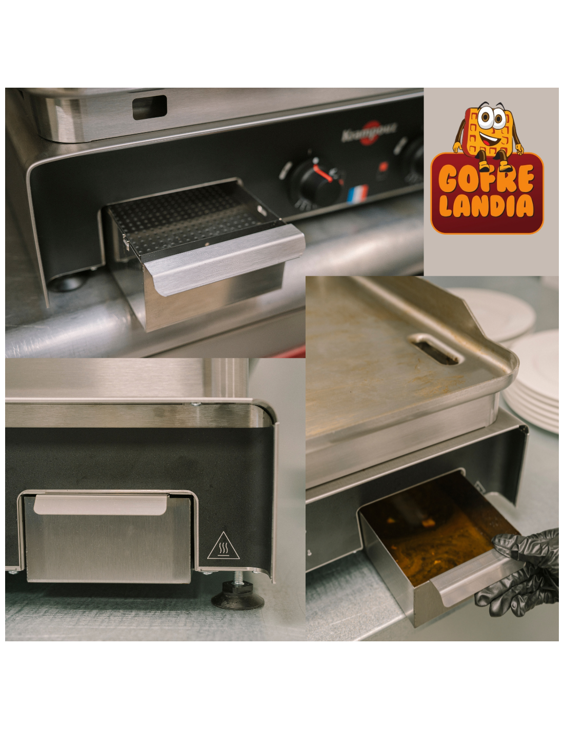 Optimiza tu cocina con la perfección en higiene y diseño de la plancha profesional Confort de Krampouz. Su placa de acero inoxidable embutida con esquinas redondeadas no solo asegura una limpieza fácil, sino que eleva los estándares de higiene, manteniendo tu espacio impecable.