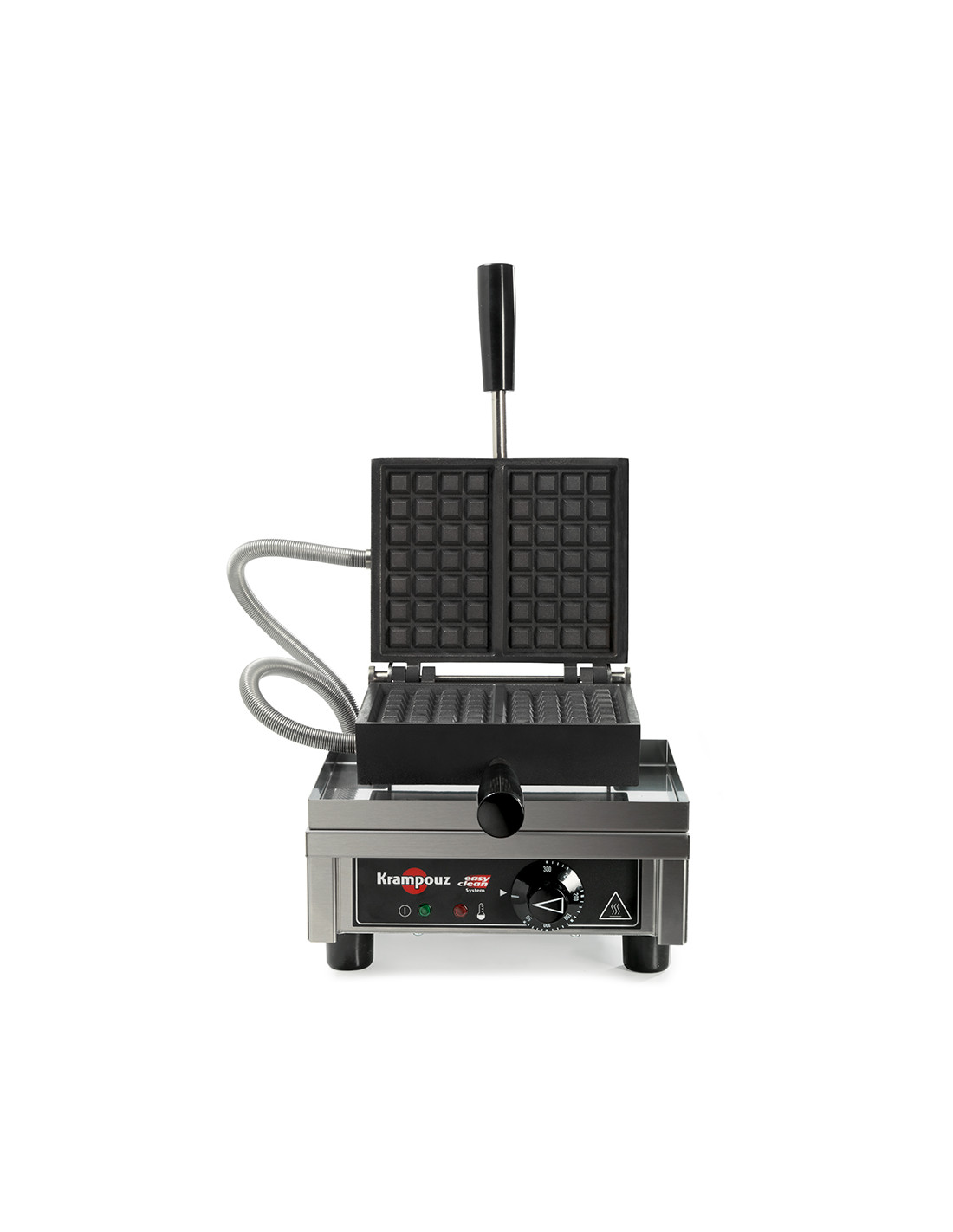 La gofrera profesional 4×7 Bruselas de Krampouz permite calentar 2 gofres simultáneamente. La apertura de sus planchas a 90° garantiza un resultado de cocción igual de uniforme y crujiente que con un gofre fresco.